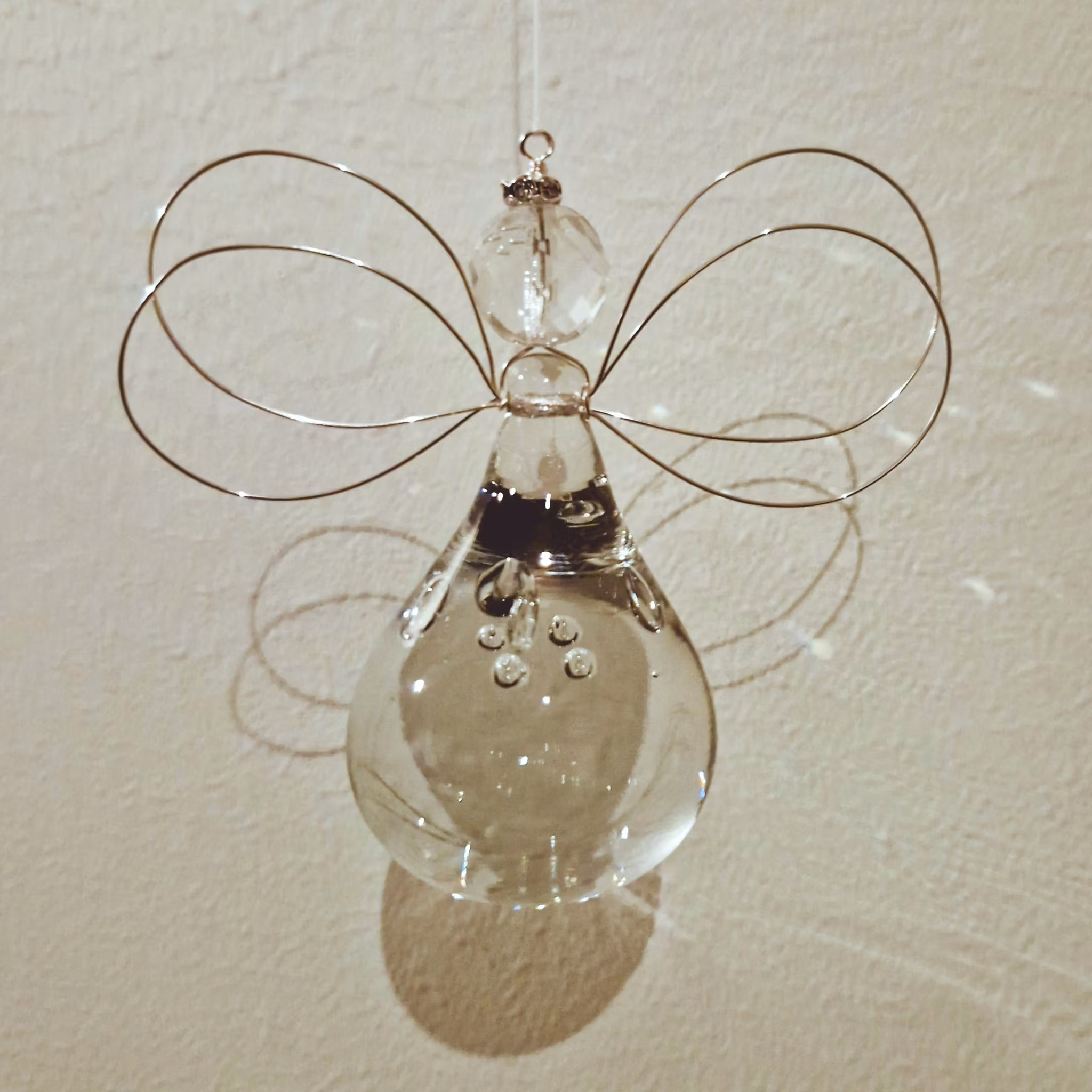 ... är en systerängel till No8, med samma runda mage från en kristallkrona från 40-talet, men med vingar i flera lager av metalltråd och en facetterad pärla till huvud.