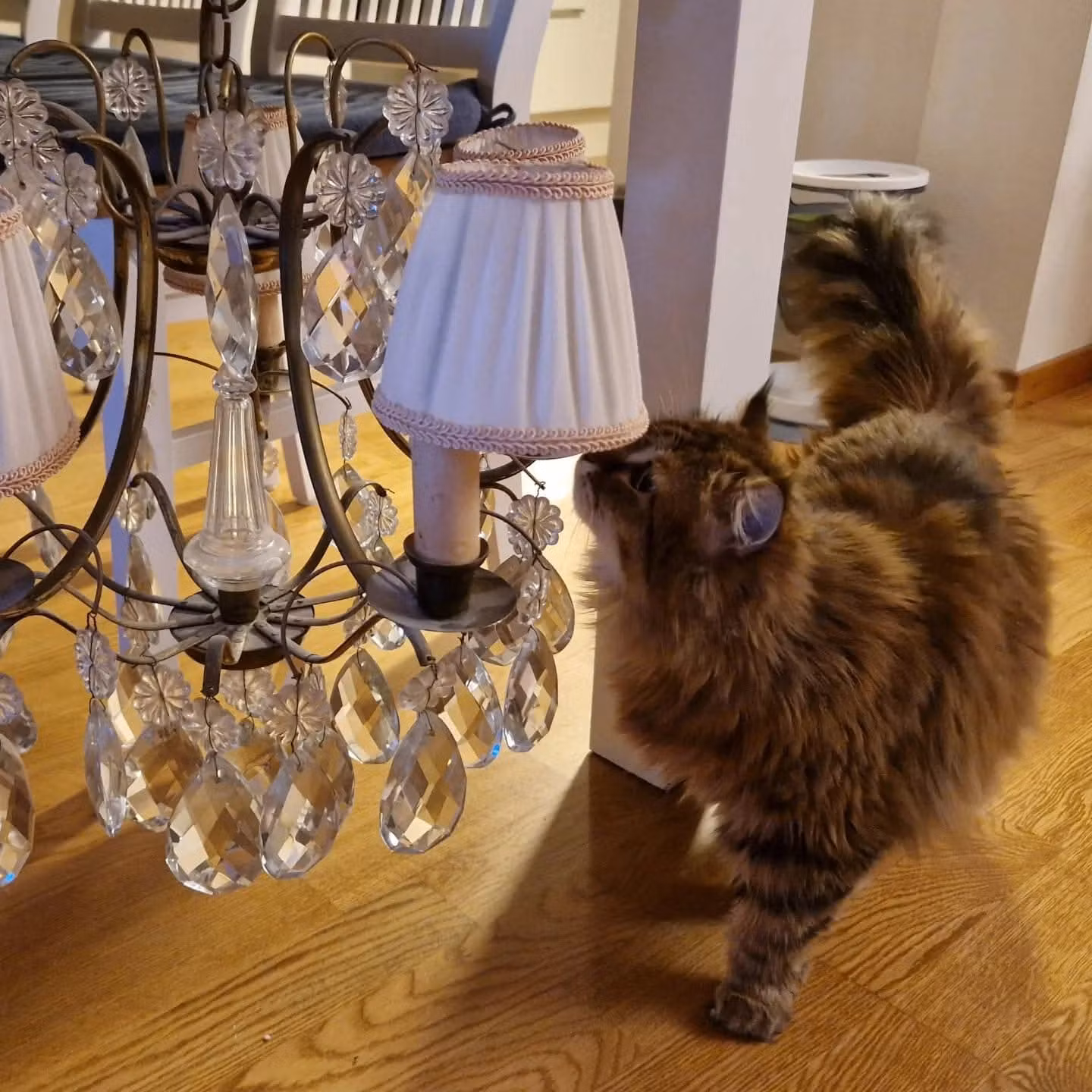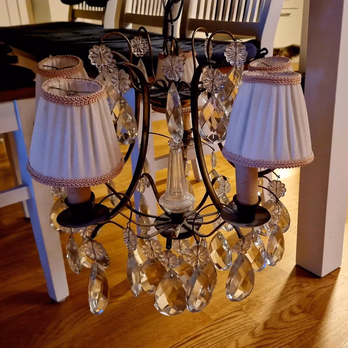 … har en droppformad mage av en vacker barockprisma från en riktigt gammal kristallkrona.