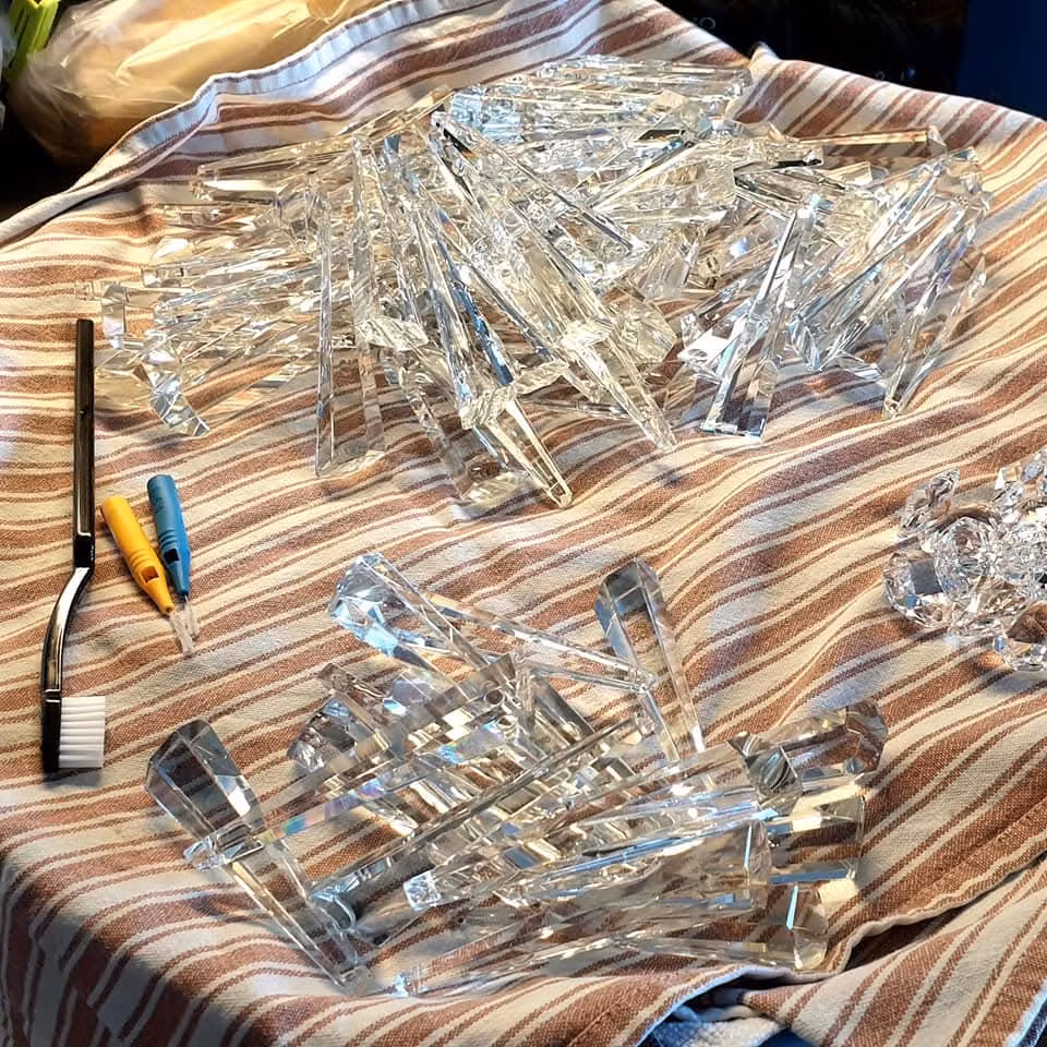 Hela ängeln ger skarpa solkatter i regnbågens alla färger när solljuset bryts i den.