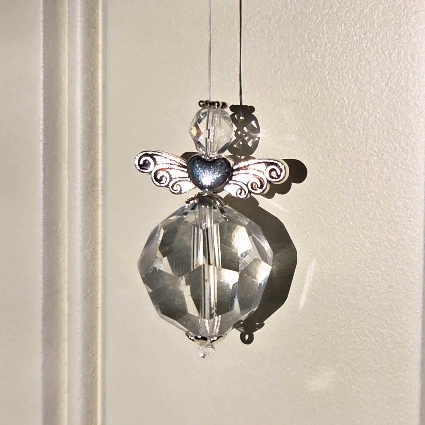 Nyckelord: ängel, fönsterängel, kristallängel, solfångare , kristall, kristallprisma, handgjord ängel, hängande ängel, fönsterprydnad, dekoration, fönsterdekoration, hantverk, heminredning, prydnadsängel, skyddsängel, ängel gåva, ängel present, dopgåva, doppresent, dopgåva, konfirmationspresent, minnesgåva, vänskapsgåva, personlig gåva, unik gåva.
