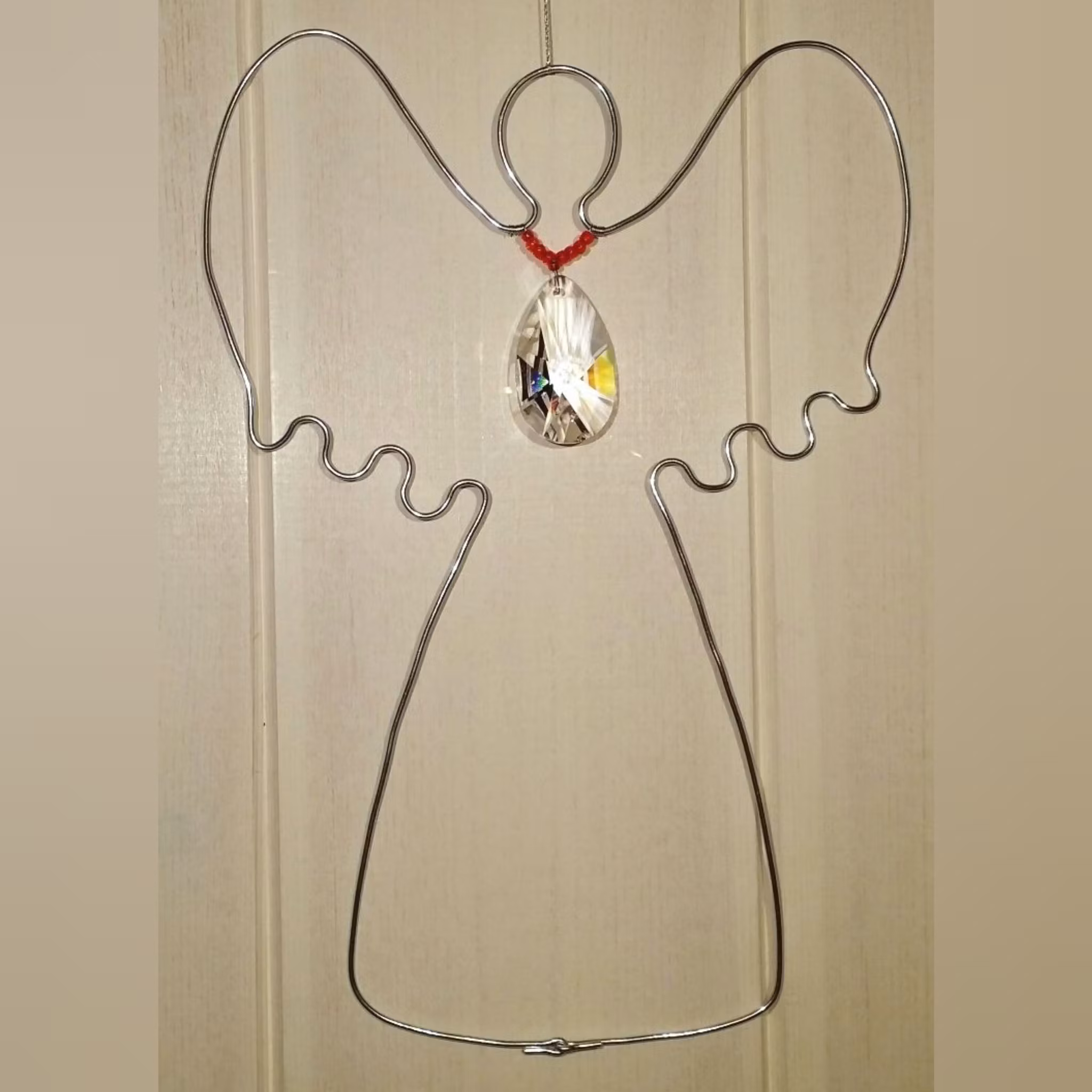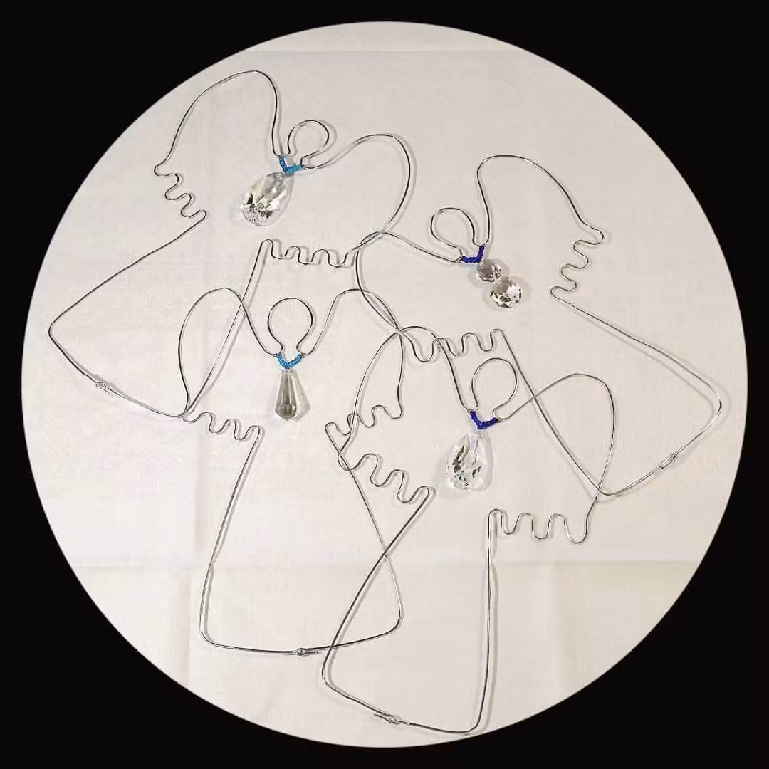 Nyckelord: ängel, fönsterängel, trådslöjdsängel, handgjord ängel, hängande ängel, fönsterprydnad, dekoration, fönsterdekoration, hantverk, heminredning, prydnadsängel, skyddsängel, ängel gåva, ängel present, dopgåva, doppresent, dopgåva, konfirmationspresent, minnesgåva, vänskapsgåva, personlig gåva, unik gåva.