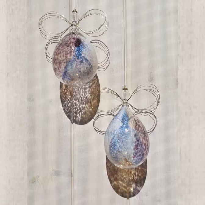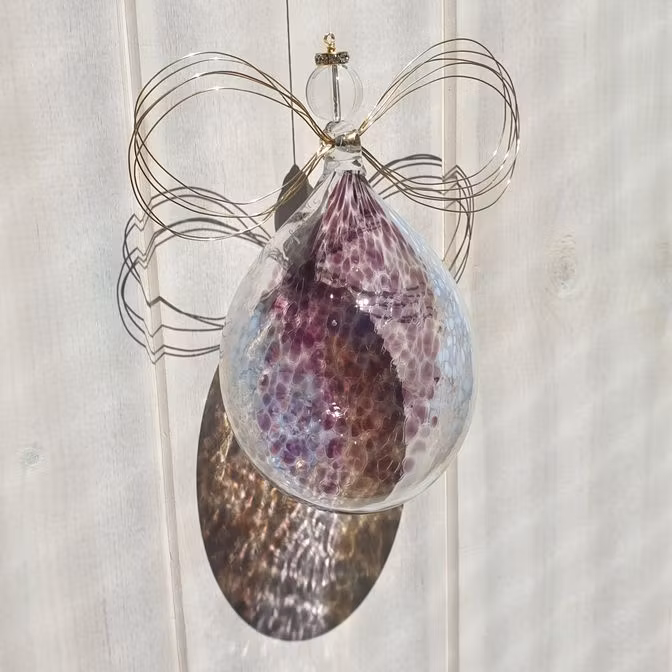 Nyckelord: ängel, fönsterängel, kul-ängel, handgjord ängel, hängande ängel, fönsterprydnad, dekoration, fönsterdekoration, glaskula, handblåst glaskula, hantverk, heminredning, prydnadsängel, skyddsängel, ängel gåva, ängel present, dopgåva, doppresent, dopgåva, konfirmationspresent, minnesgåva, vänskapsgåva, personlig gåva, unik gåva.