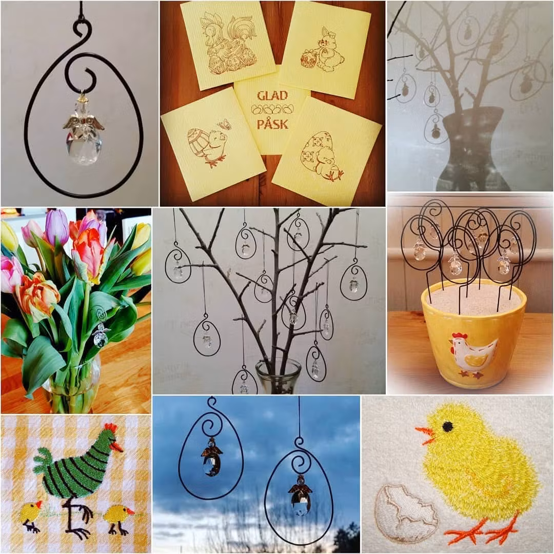 Det lilla ägget hänger fint i påskriset och det lite större passar bra även i ett fönster.