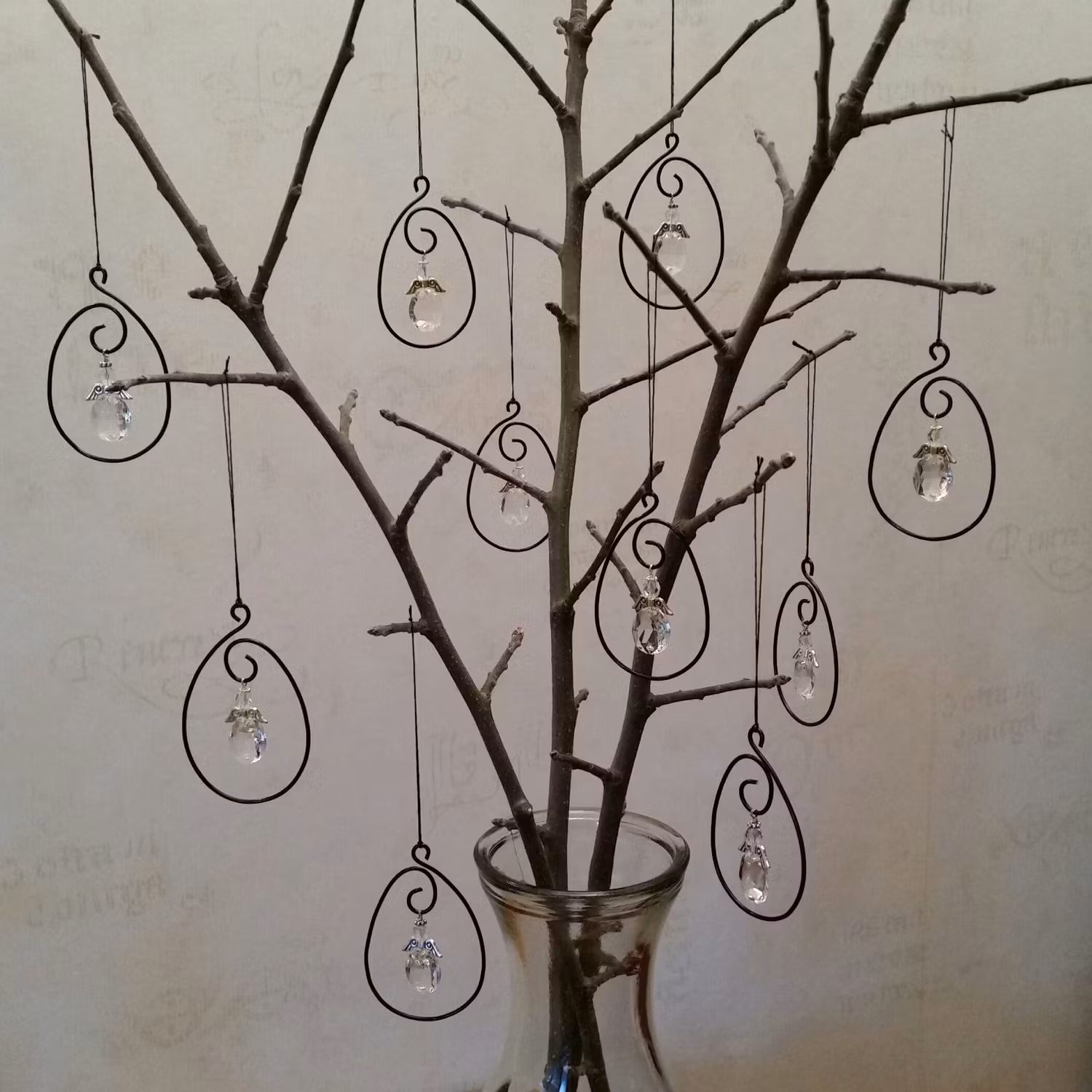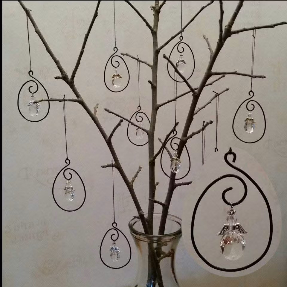 ... är en liten kristallängel som hänger i ett ägg skapat i trådslöjd.