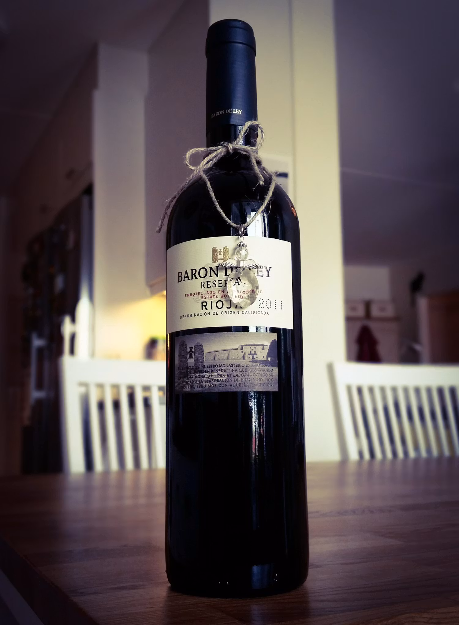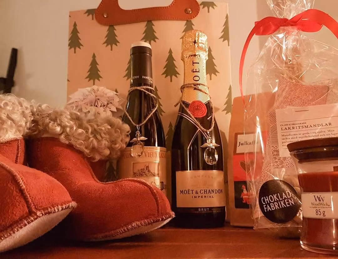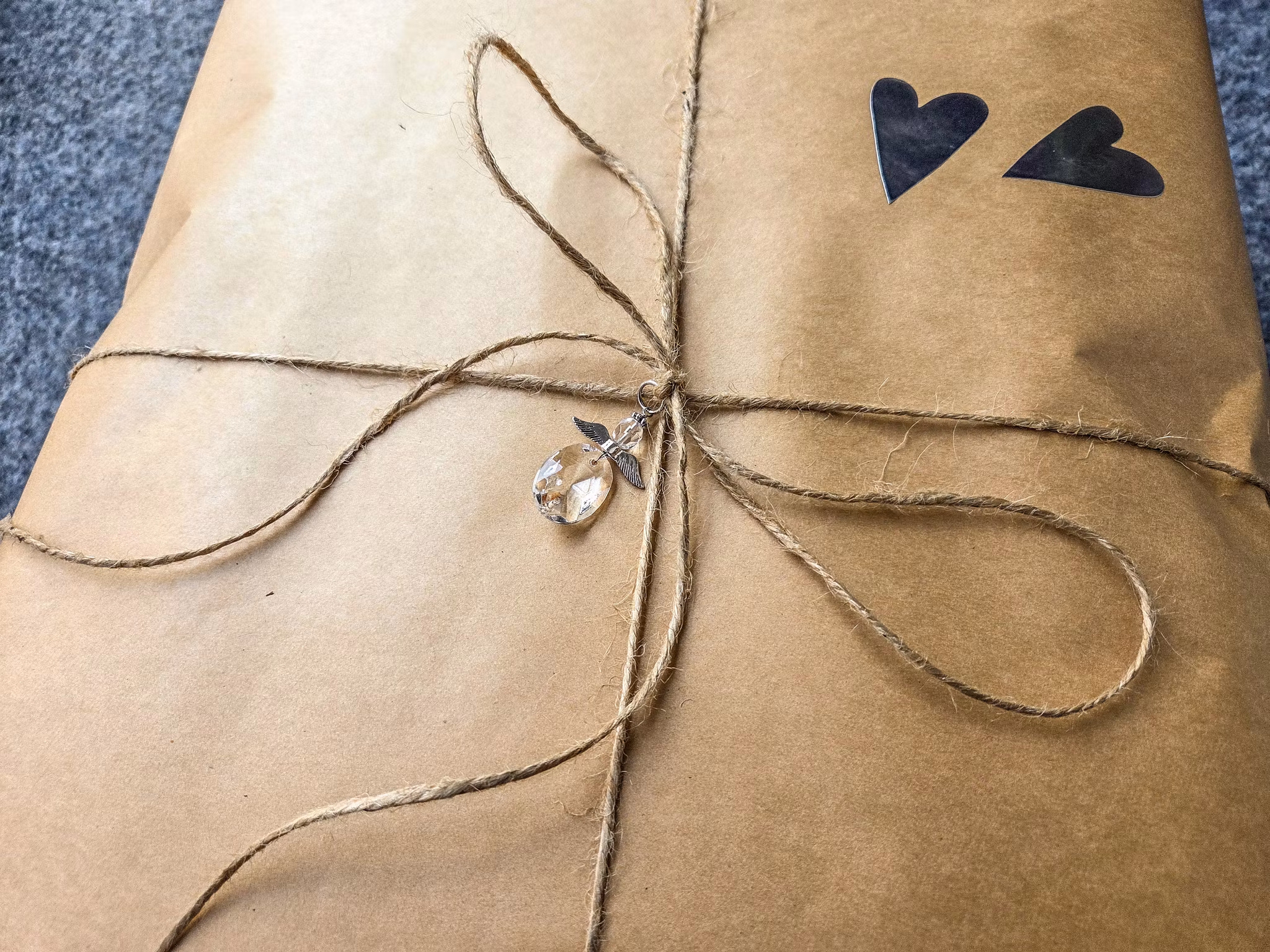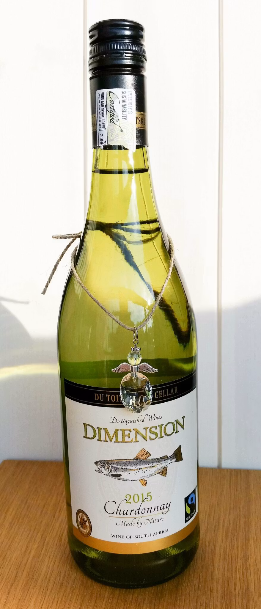 Ängeln på snöret passar lika bra runt en vas som runt en vinflaska, eller varför inte som personlig utsmyckning av ett inslaget paket.