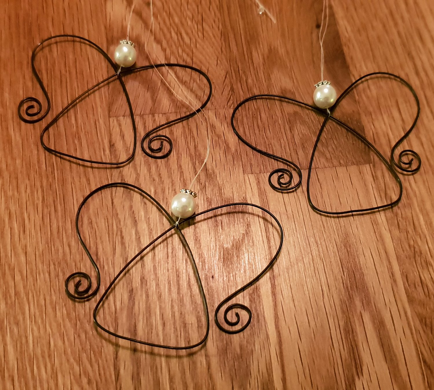 De här änglarna skapas i olika sorters metalltråd med olika egenskaper. Den rostfria tråden är lite blankare och håller länge, även utomhus.. Den svartglödgade tråden ger en vacker silhuett.