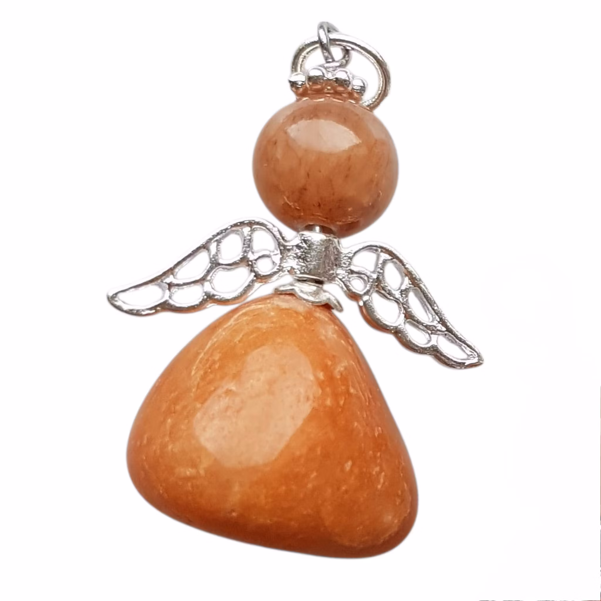 Charmig smyckesängel i röd/orange aventurin som bär på naturens egna färgskiftningar.