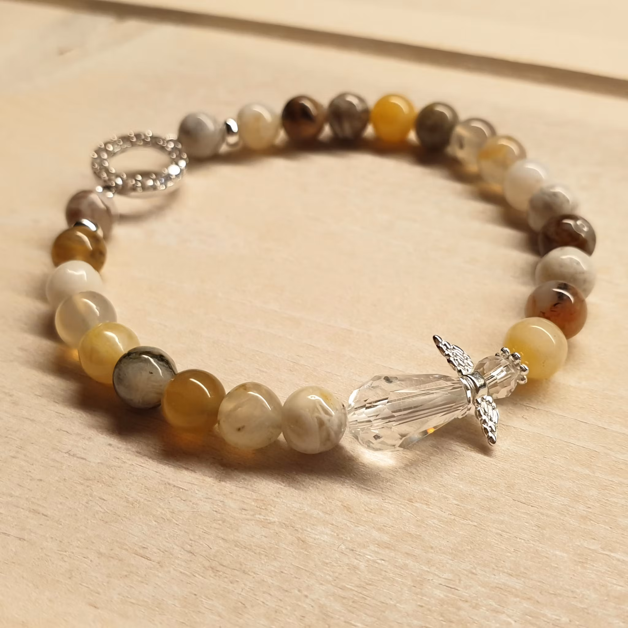 Nyckelord: armband, ängel som smycke, smyckesängel, halvädelsten, kristall, strass