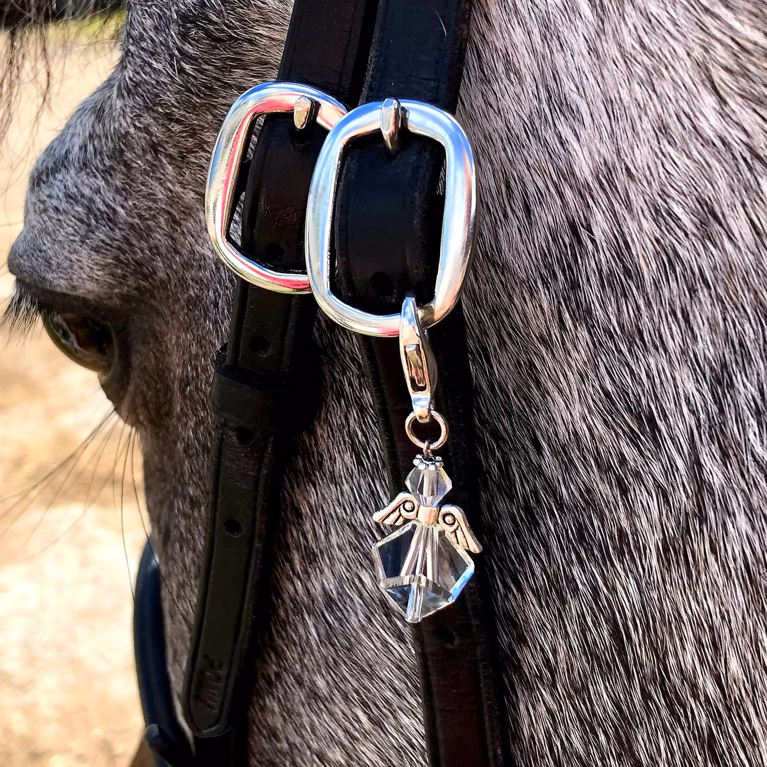 Denna ängel passar bra både som halssmycke eller hängande i t ex ett fönster alternativt som lyckoängel på en väska eller i hästens träns.