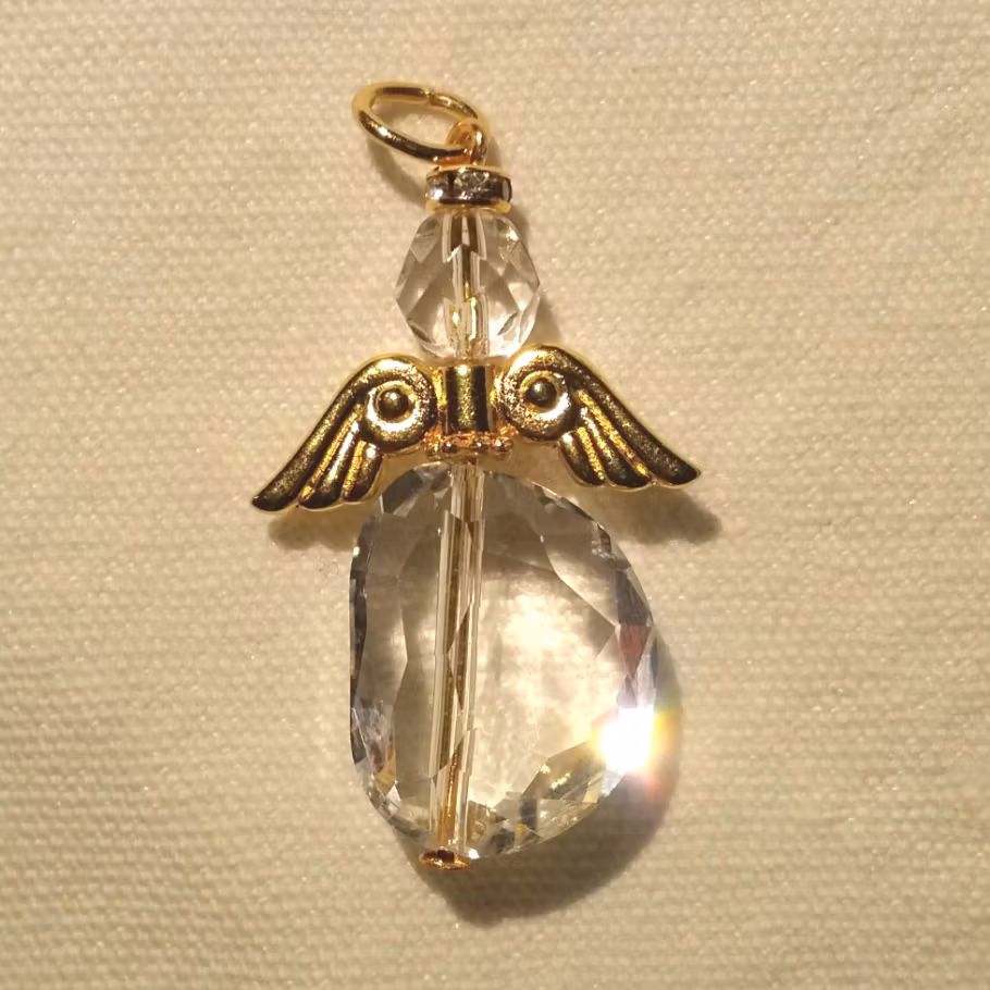 Nyckelord: ängel, smyckesängel, kristallängel, kristall, kristallprisma, handgjord ängel, ängel som berlock, örhängen, änglaörhängen, änglahänge, smycke, hantverk, skyddsängel, glasängel, ängel gåva, ängel present, dopgåva, doppresent, dopängel, konfirmationspresent, minnesgåva, vänskapsgåva, personlig gåva, unik gåva, änglasymbol.