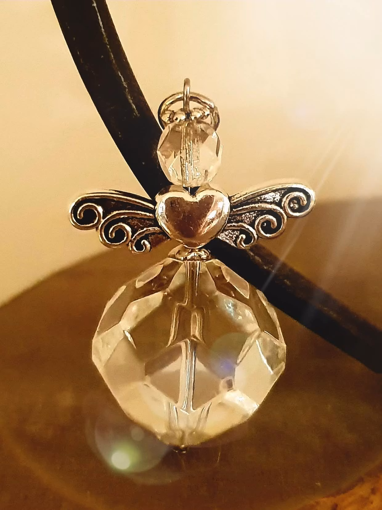 Nyckelord: ängel, smyckesängel, kristallängel, kristall, kristallprisma, handgjord ängel, ängel som berlock, örhängen, änglaörhängen, änglahänge, smycke, hantverk, skyddsängel, glasängel, ängel gåva, ängel present, dopgåva, doppresent, dopängel, konfirmationspresent, minnesgåva, vänskapsgåva, personlig gåva, unik gåva, änglasymbol.