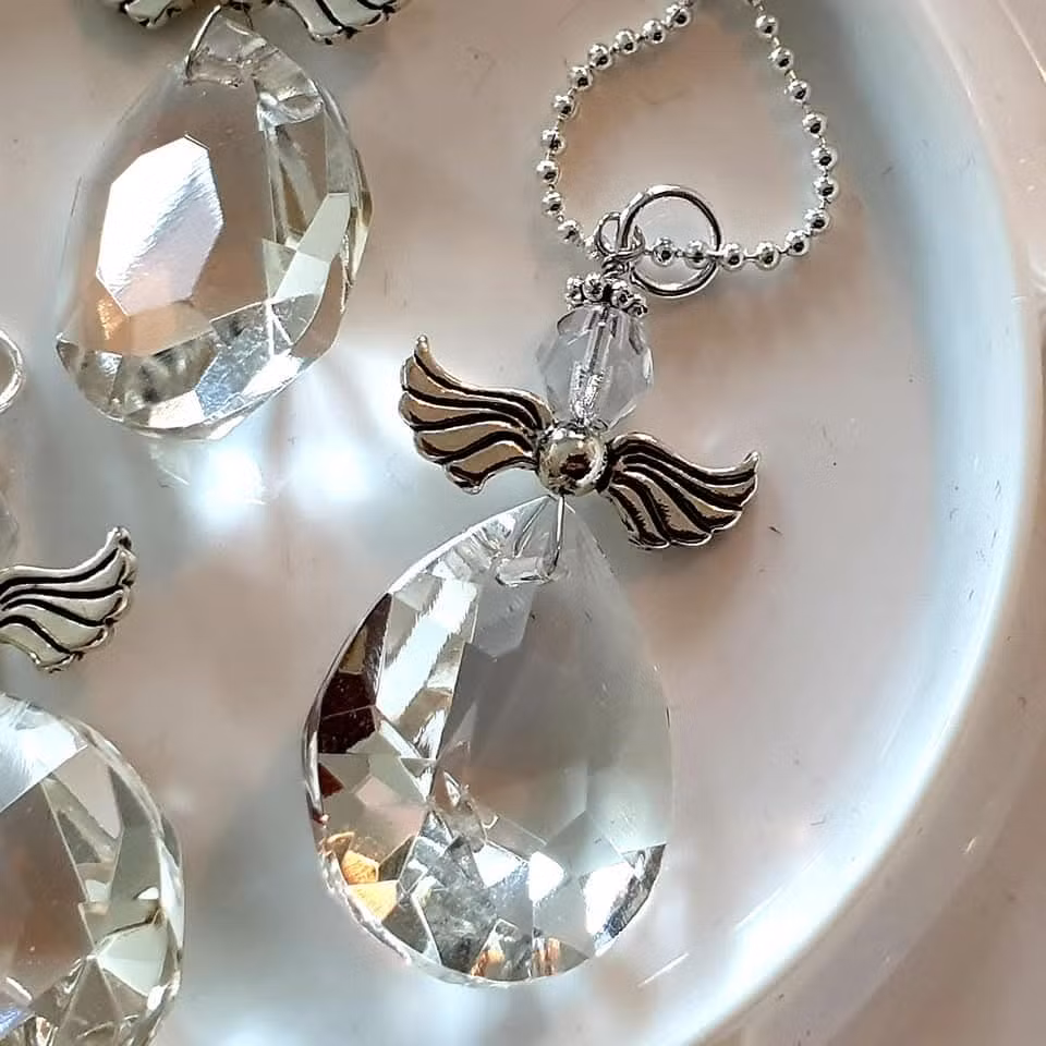 Nyckelord: ängel, smyckesängel, kristallängel, kristall, kristallprisma, handgjord ängel, ängel som berlock, örhängen, änglaörhängen, änglahänge, smycke, hantverk, skyddsängel, glasängel, ängel gåva, ängel present, dopgåva, doppresent, dopängel, konfirmationspresent, minnesgåva, vänskapsgåva, personlig gåva, unik gåva, änglasymbol.