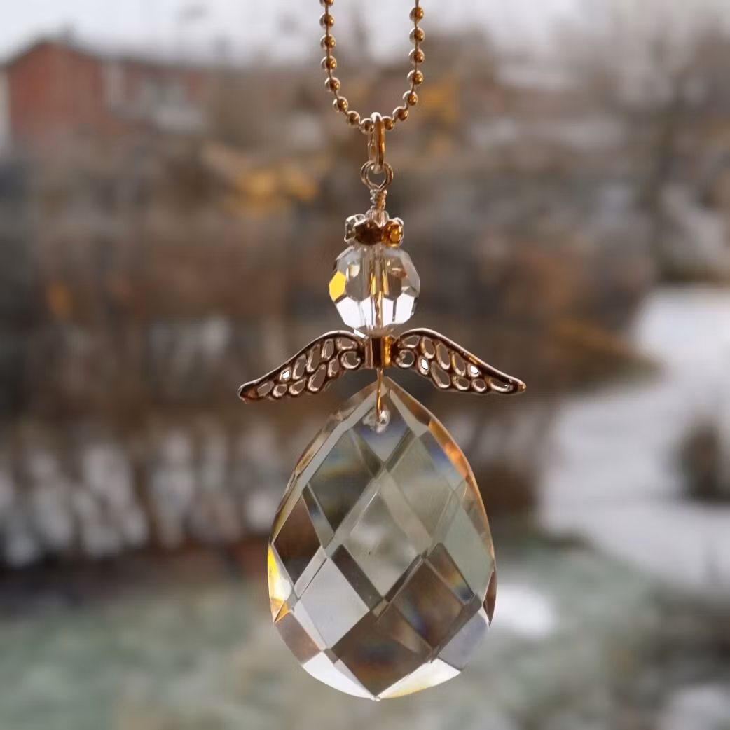 Nyckelord: ängel, smyckesängel, kristallängel, kristall, kristallprisma, handgjord ängel, ängel som berlock, örhängen, änglaörhängen, änglahänge, smycke, hantverk, skyddsängel, glasängel, ängel gåva, ängel present, dopgåva, doppresent, dopängel, konfirmationspresent, minnesgåva, vänskapsgåva, personlig gåva, unik gåva, änglasymbol.