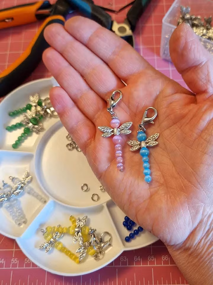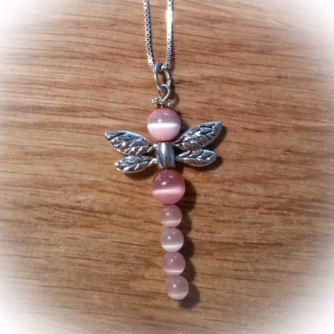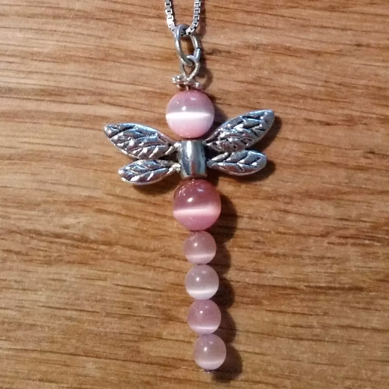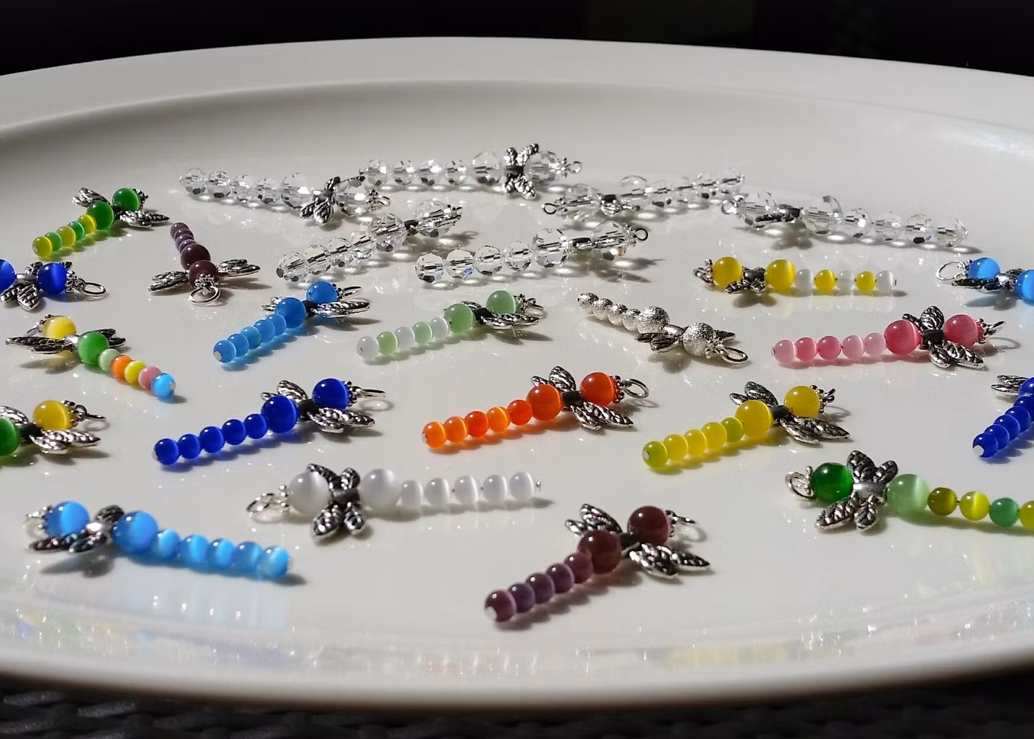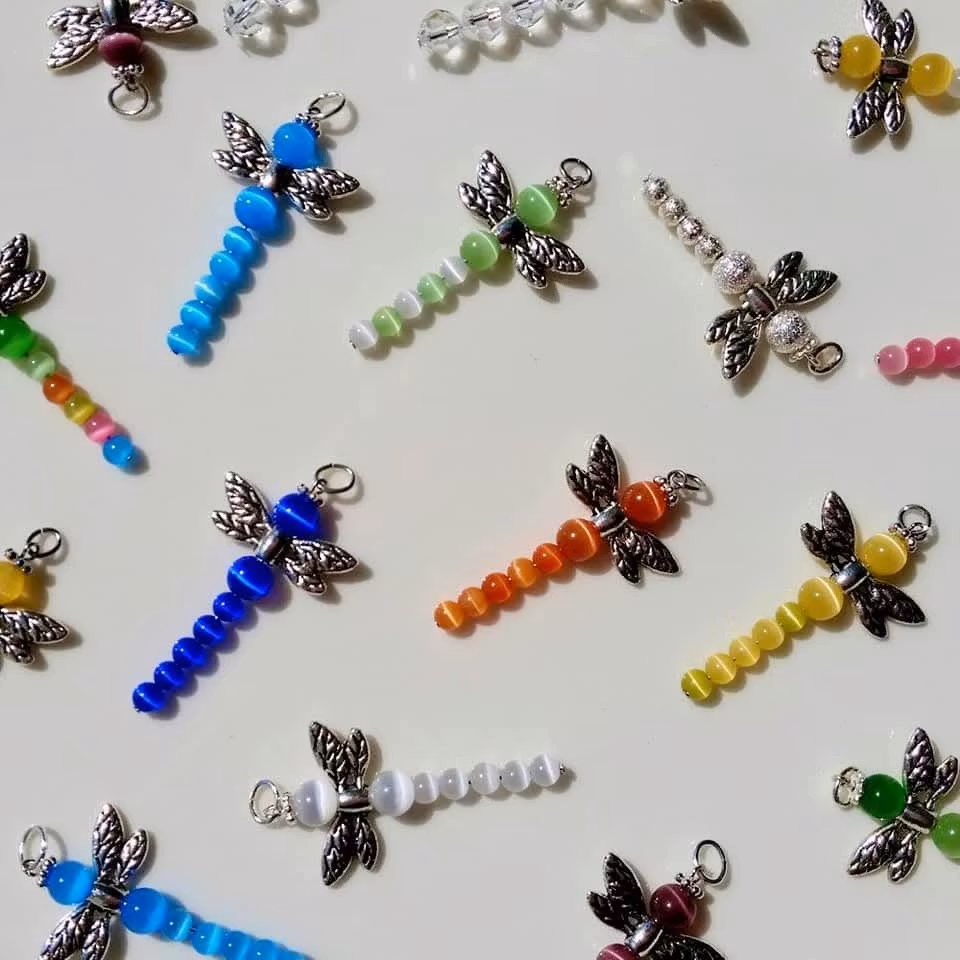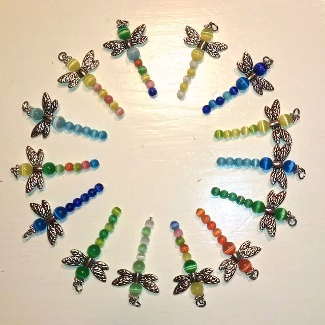 ... är skapad av Cats eye pärlor och finns i många olika färger. Den hänger fint som smycke i en kedja runt halsen eller på en väska. Finns med både ögla eller klolås.
