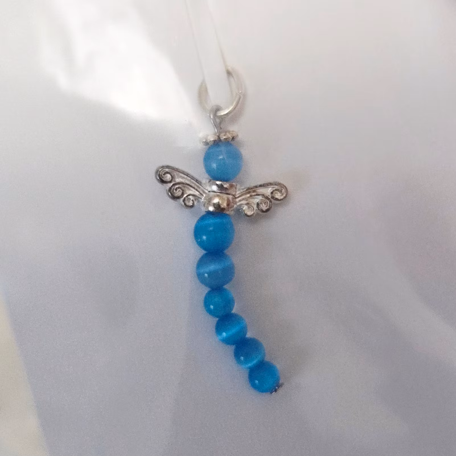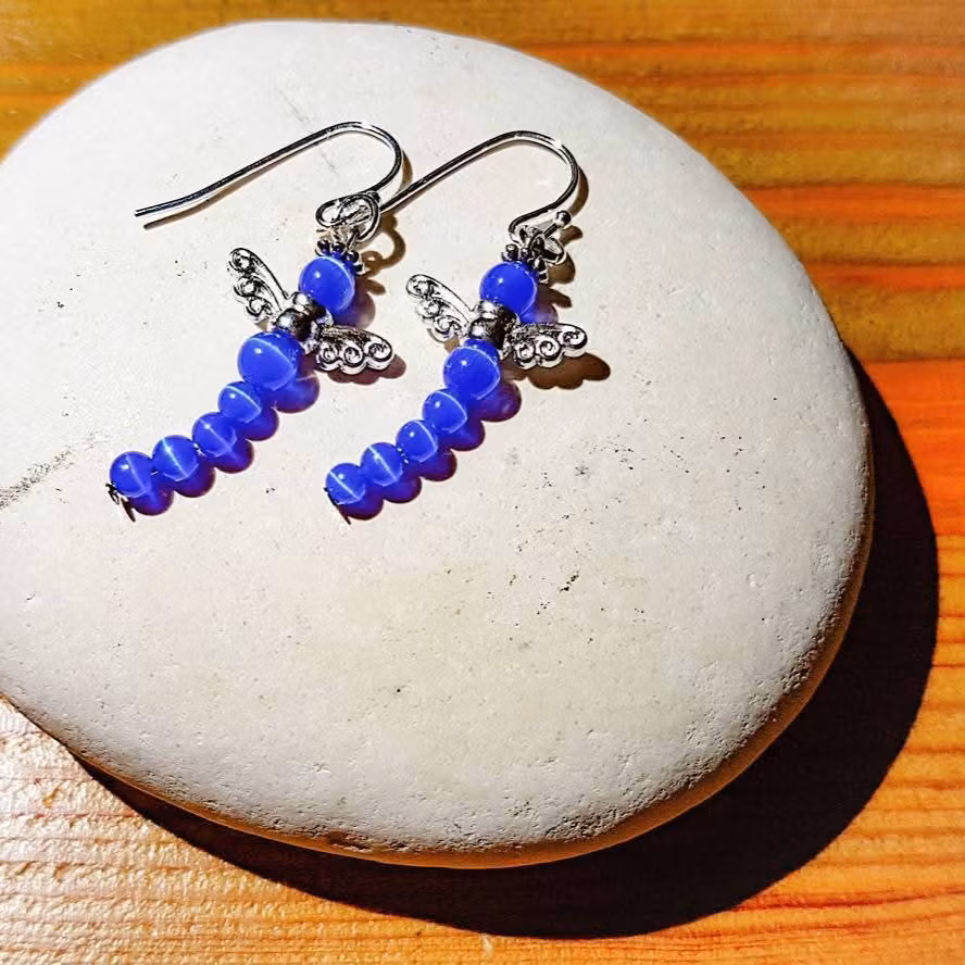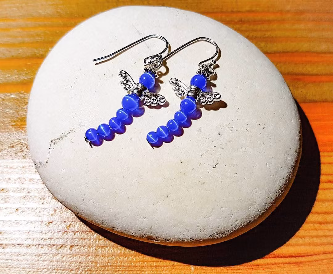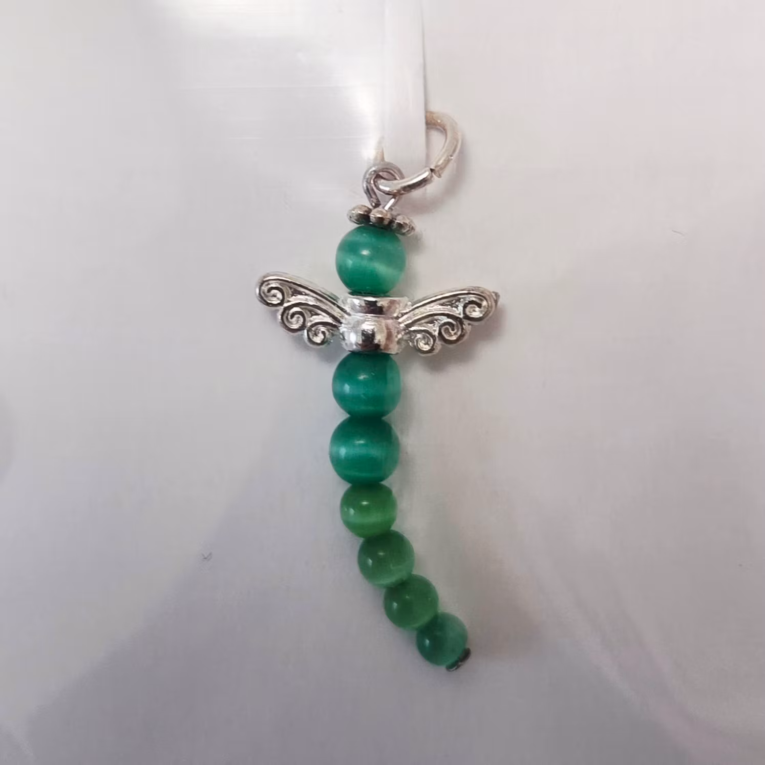 Denna slända hänger fint som smycke i en kedja runt halsen eller som örhängen.