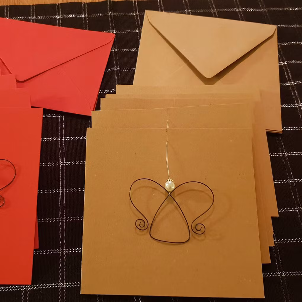 Ängeln har en trådögla och kan enkelt lossas från kortet och hängas på valfri plats.