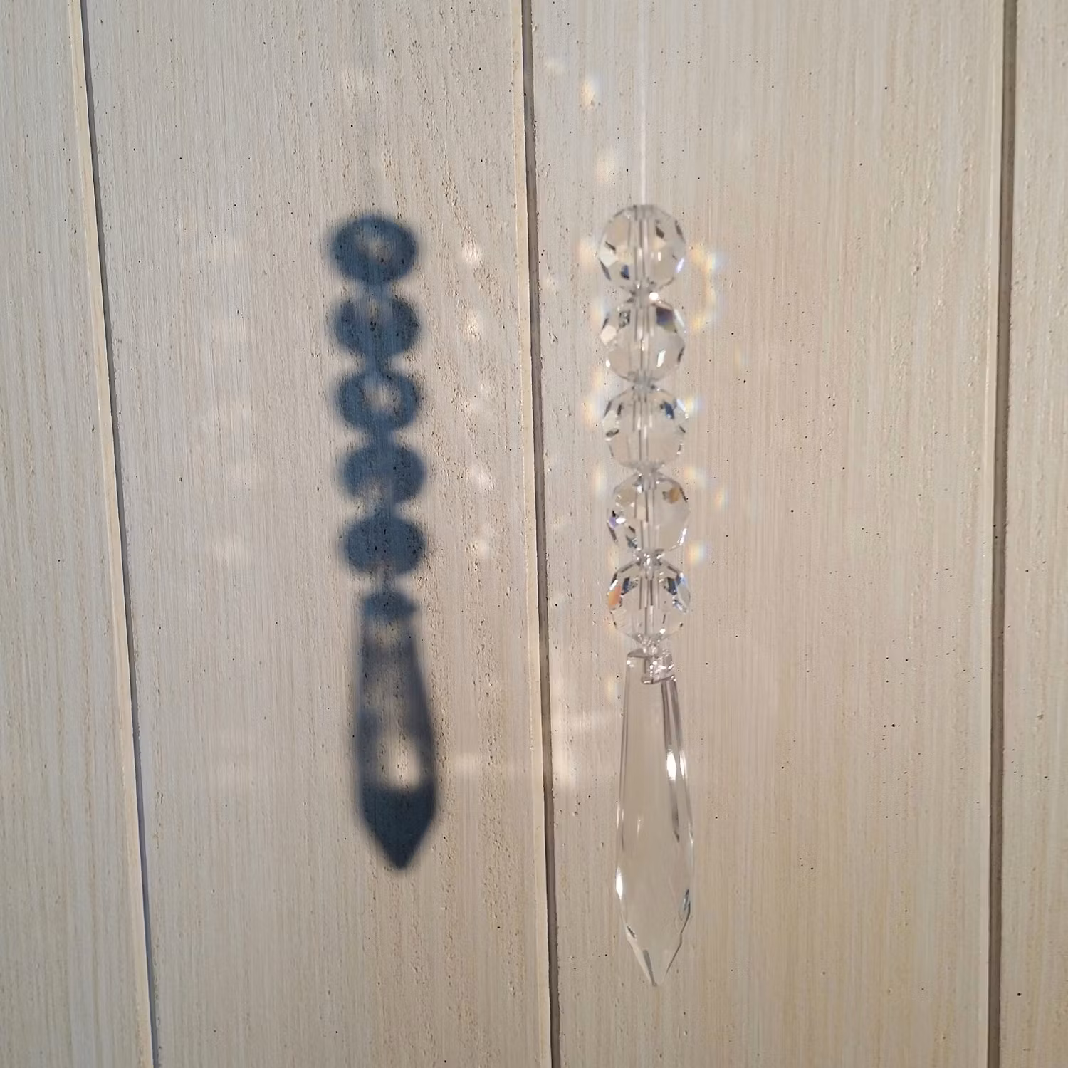 ... på Angels and Stuff's vis, med fem pärlor och en prisma i kristall, som tillsammans ger de mest fantastiska solkatter i regnbågens alla färger när solens ljus får brytas genom dem.