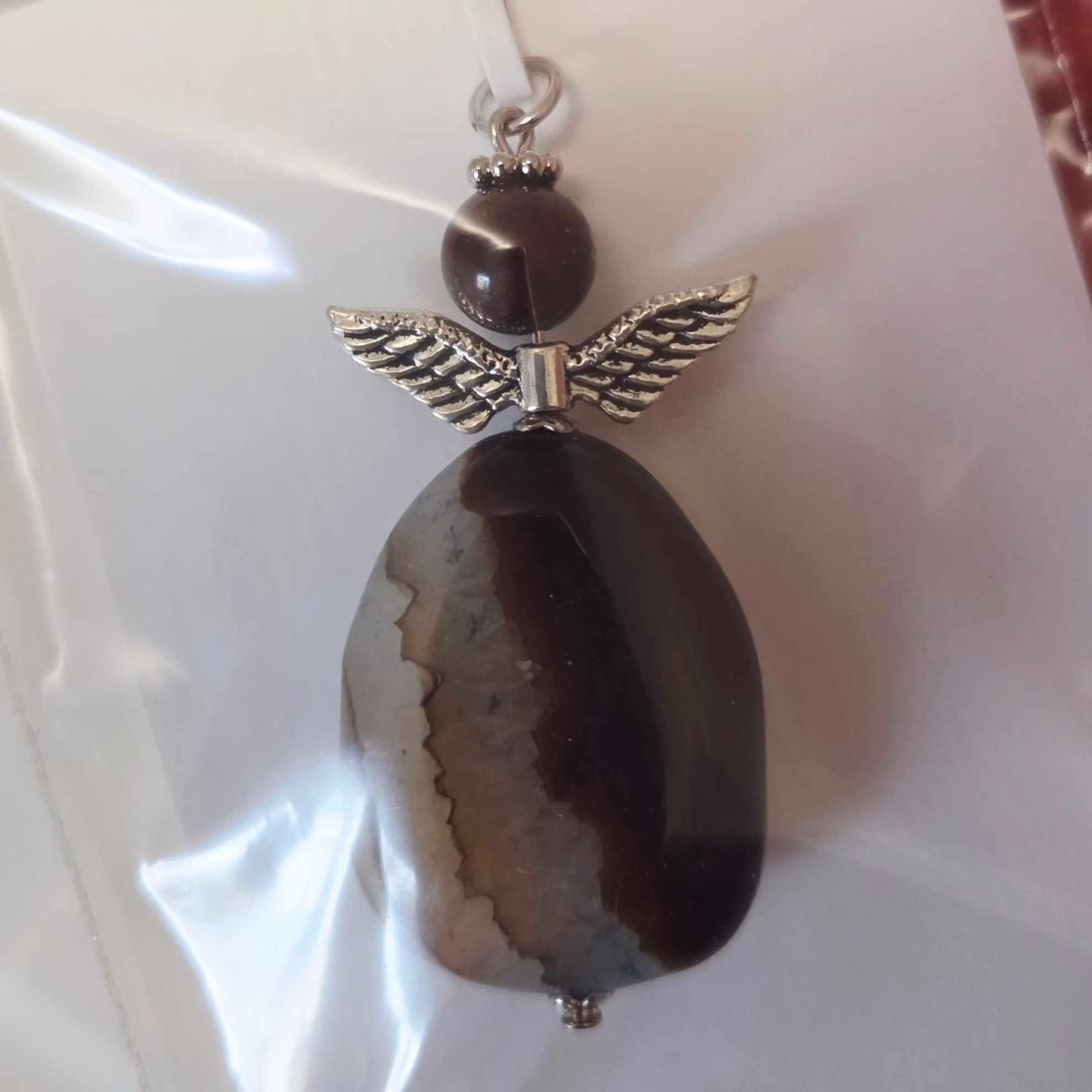 Nyckelord: agat, mossagat, brun agat, halvädelsten, smyckesängel, skyddsängel, kristallängel, healingsten, jordning, balans, trygghet, styrka, unika mönster, handgjord ängel, gåva
