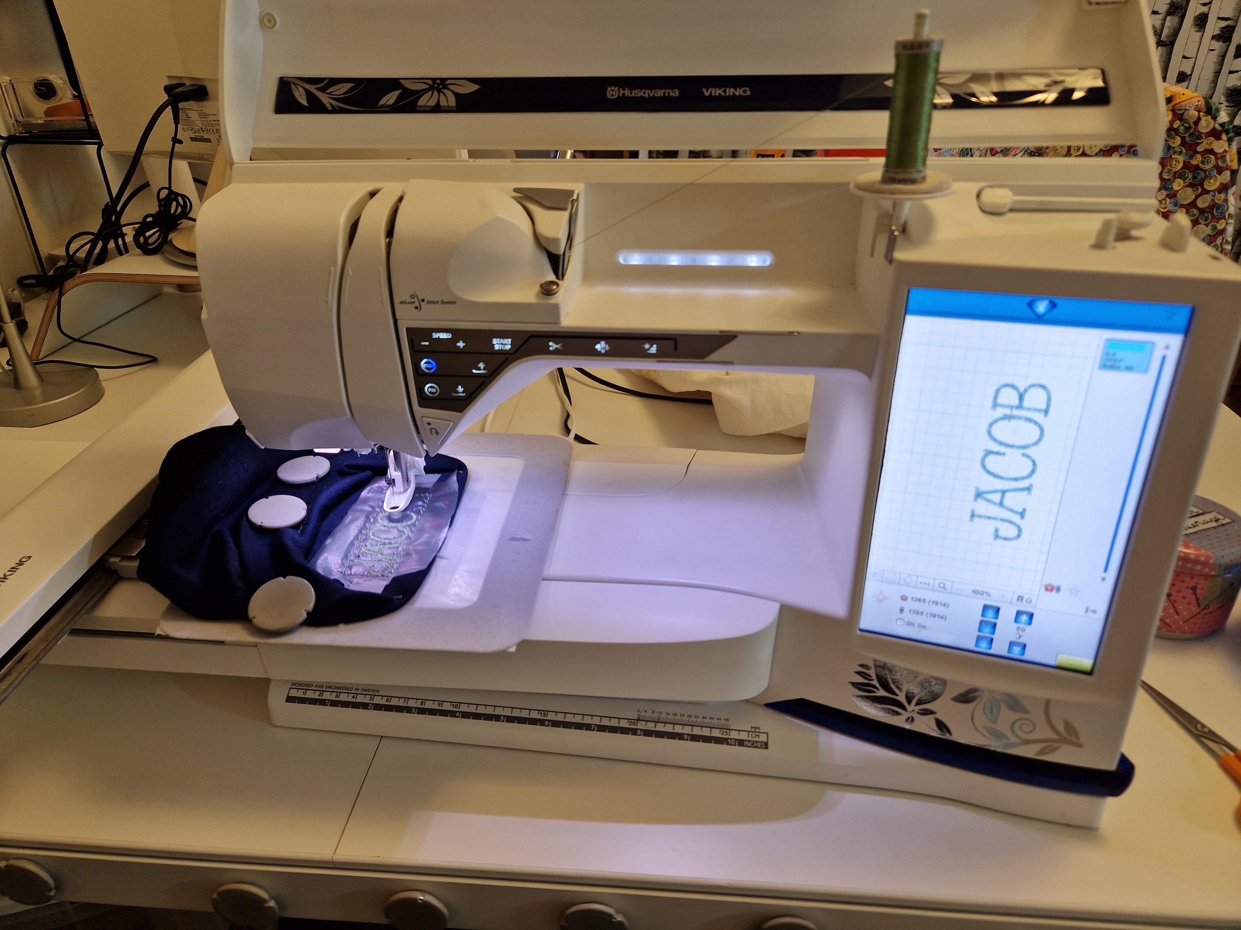 Och om du undrar vad som var på gång i brodermaskinen på bilden högst upp, så var det en liten mössa till en liten kille.
