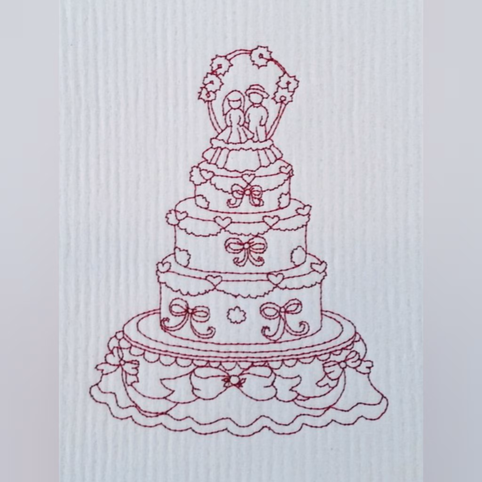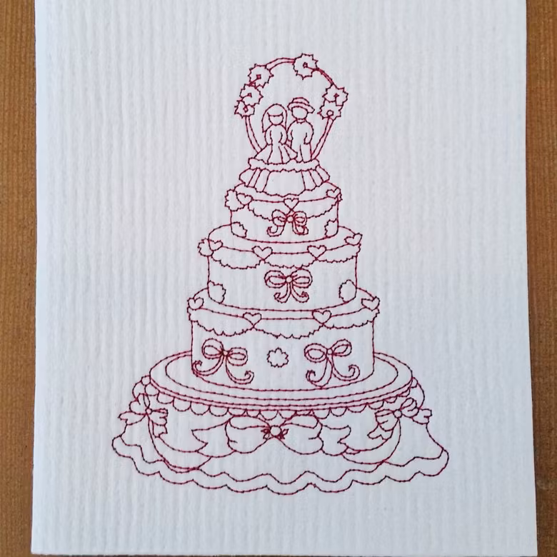 Disktrasa med en fantastisk bröllopstårta broderad.Önskad färg på trasa meddelas i kassan eller genom kontaktformuläret.