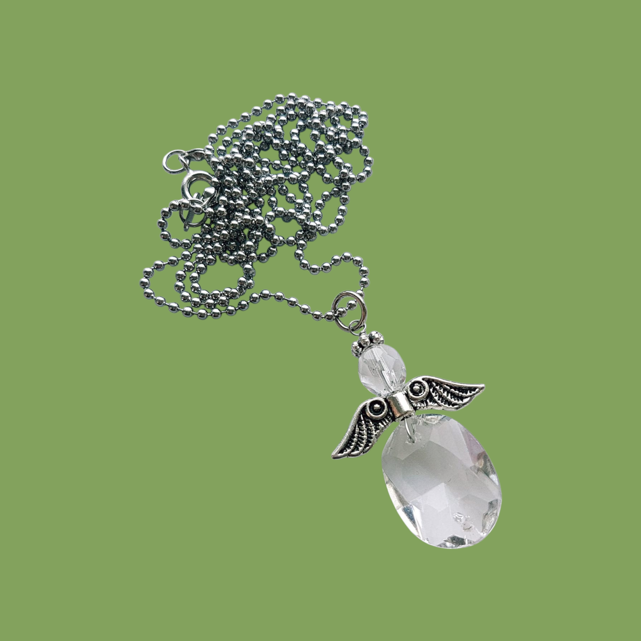 Min egen favoritlängd på kedja till flera av änglarna är 62 cm, då jag tycker att ängeln får en tydligt synlig plats där jag själv också ser den. Den är ju ändå bärarens skyddsängel också!